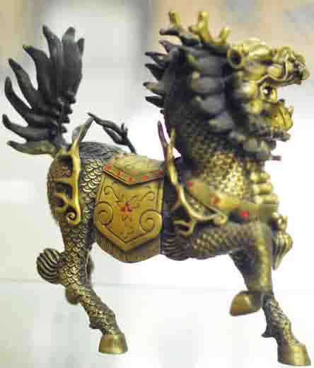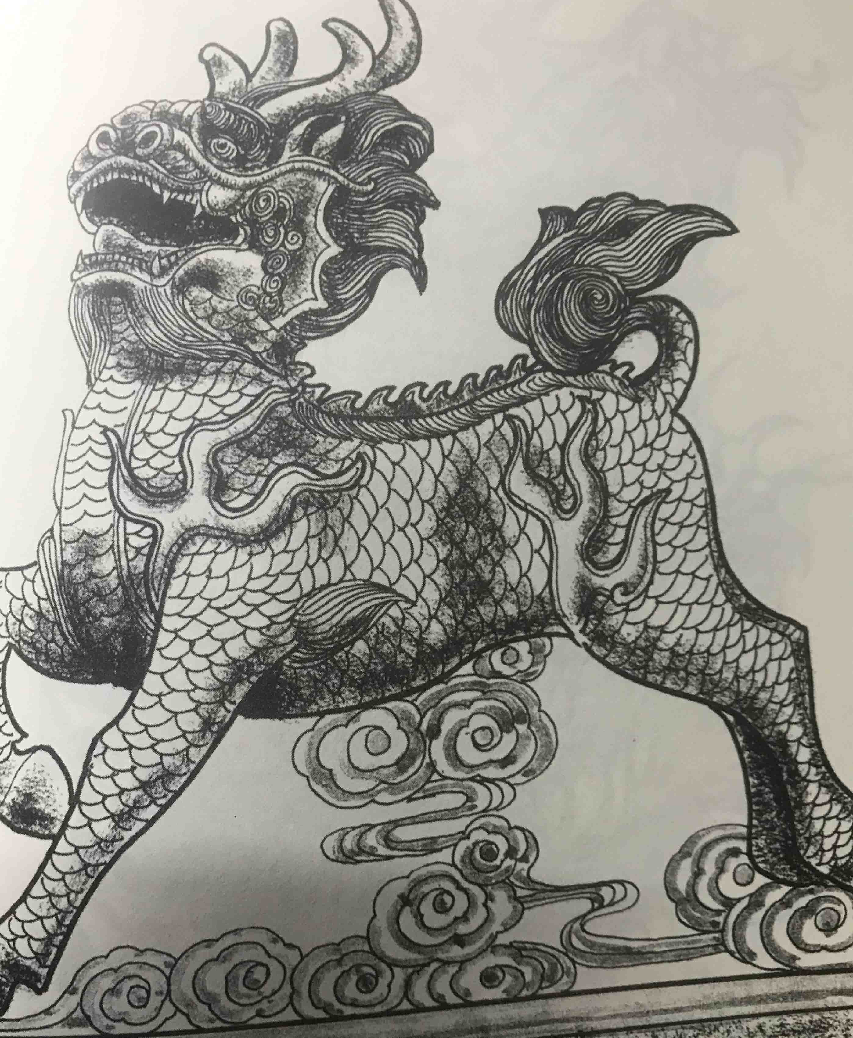的王者之气。那流动、飘逸而又充满矫健活力的优美姿态是我们所熟悉的。麒麟常常和变幻莫测的云和火相伴,每当它行走腾跃之际,那舞动的躯体和飘逸的须发,充满着活力,使人感到一种昂扬的节奏和流动的华美。