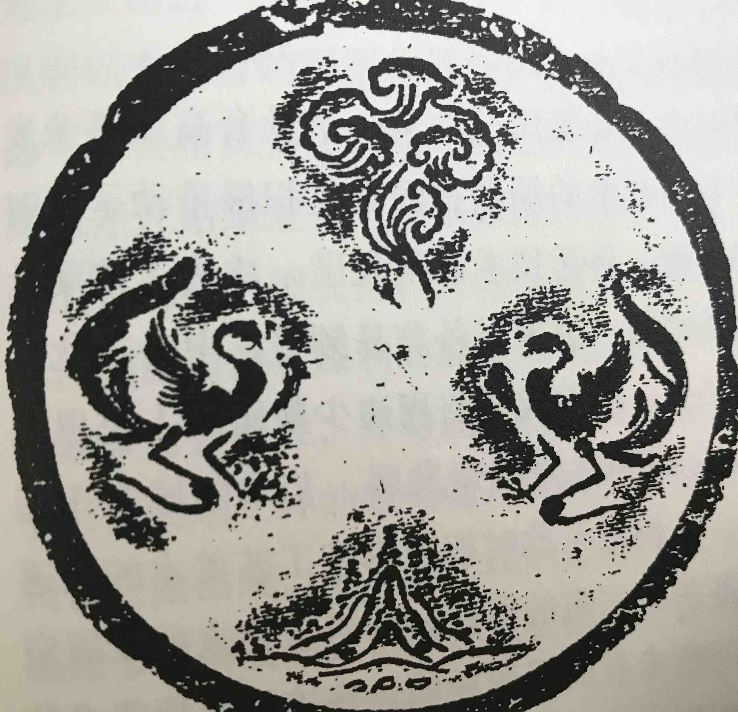 秦汉时期是时代精神振奋的时期,在社会思想方面,则是儒家和道家交相辉映的时期。一方面是儒家的伦常之说支配着人心,而另一方面则是神仙、方士之流十分盛行。因此,反映儒道思想四灵之一的凤凰(朱雀)得到大量的应用,在帛画壁画、砖刻、瓦当、石雕和漆器上大量岀现。凤的造型也更趋向写实,双翼以张开为多,羽毛鳞状开始出现,凤的姿态也更为生动奔放,或昂首伫立,或大步跨跃,或展翅高翔。这种新风格的开创,充满生机勃勃的活力,使凤显得秀丽生动。在凤鸟的细部刻画上,可以在自然界的禽鸟中找到依据,如冠羽和孔雀之冠类似,足的形态比以前更为拉长,有的很纤细,形似鹤足。风鸟的造型往往以厚重的大面、奔放有力的弧线和精巧的点构成。如湖北云梦睡虎地出土的圆漆盘上的凤鸟单相便是这段时期的杰作。古代艺术家撷取了孔雀、鹤和火鸡等动物的某些特征,融汇在凤鸟的造型上,使风鸟的形象显得活力充沛,神态自