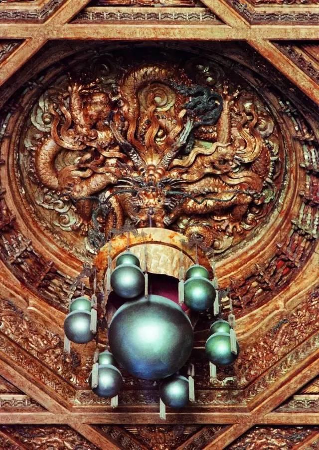 蟠龙藻井中国古建绝学,造就出穹顶之魂,藻井是常见于汉族宫殿,坛庙建筑中的室内顶棚的独特装饰部分。一般做成向上隆起的井状,有方形、多边形或圆形凹面,周围饰以各种花藻井纹、雕刻和彩绘。多用在宫殿、寺庙中的宝座、佛坛上方最重要部位。龙乃中华民族图腾,蟠龙藻井为藻井最高等级,故多为皇家宫殿所用,以显地位之尊贵。