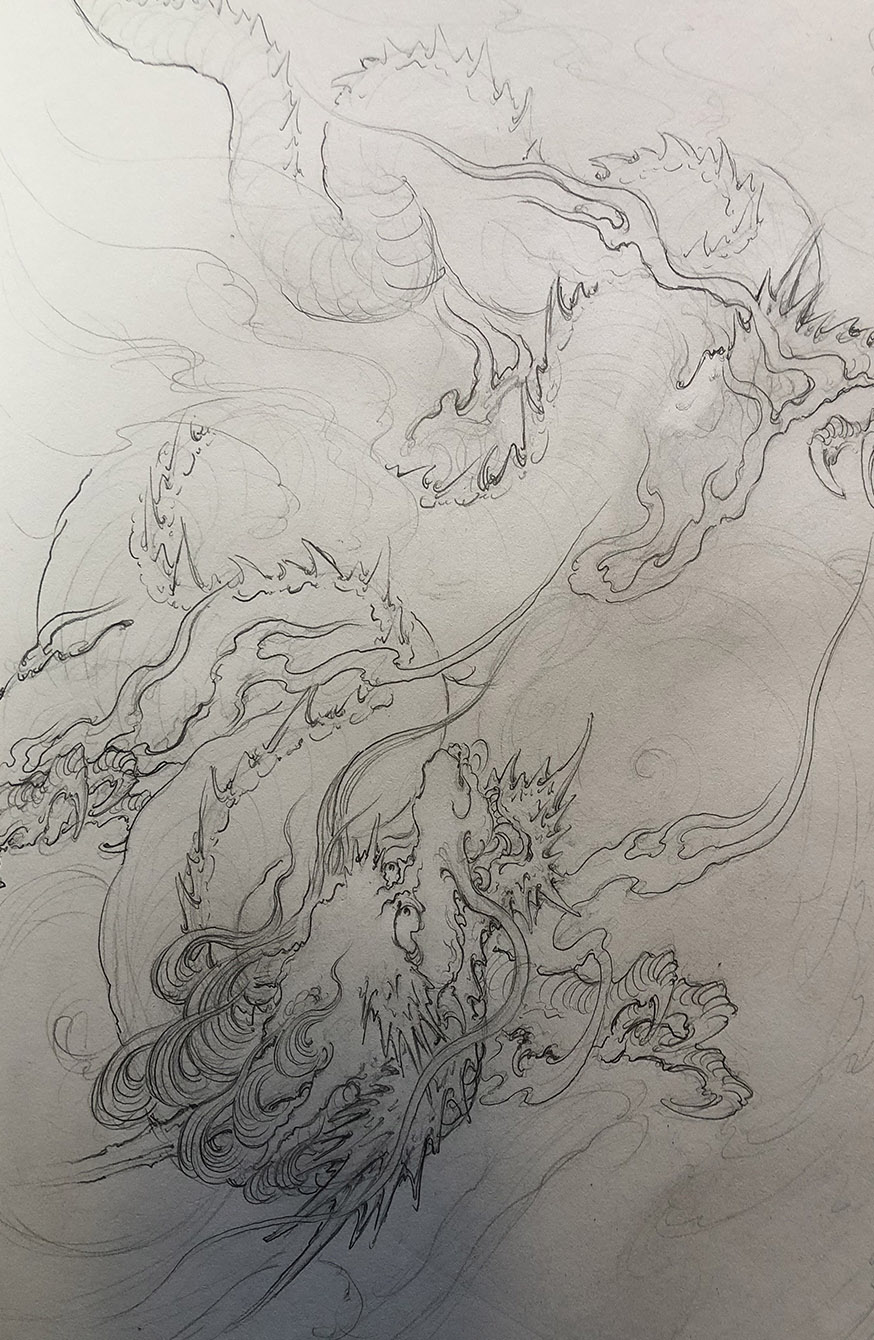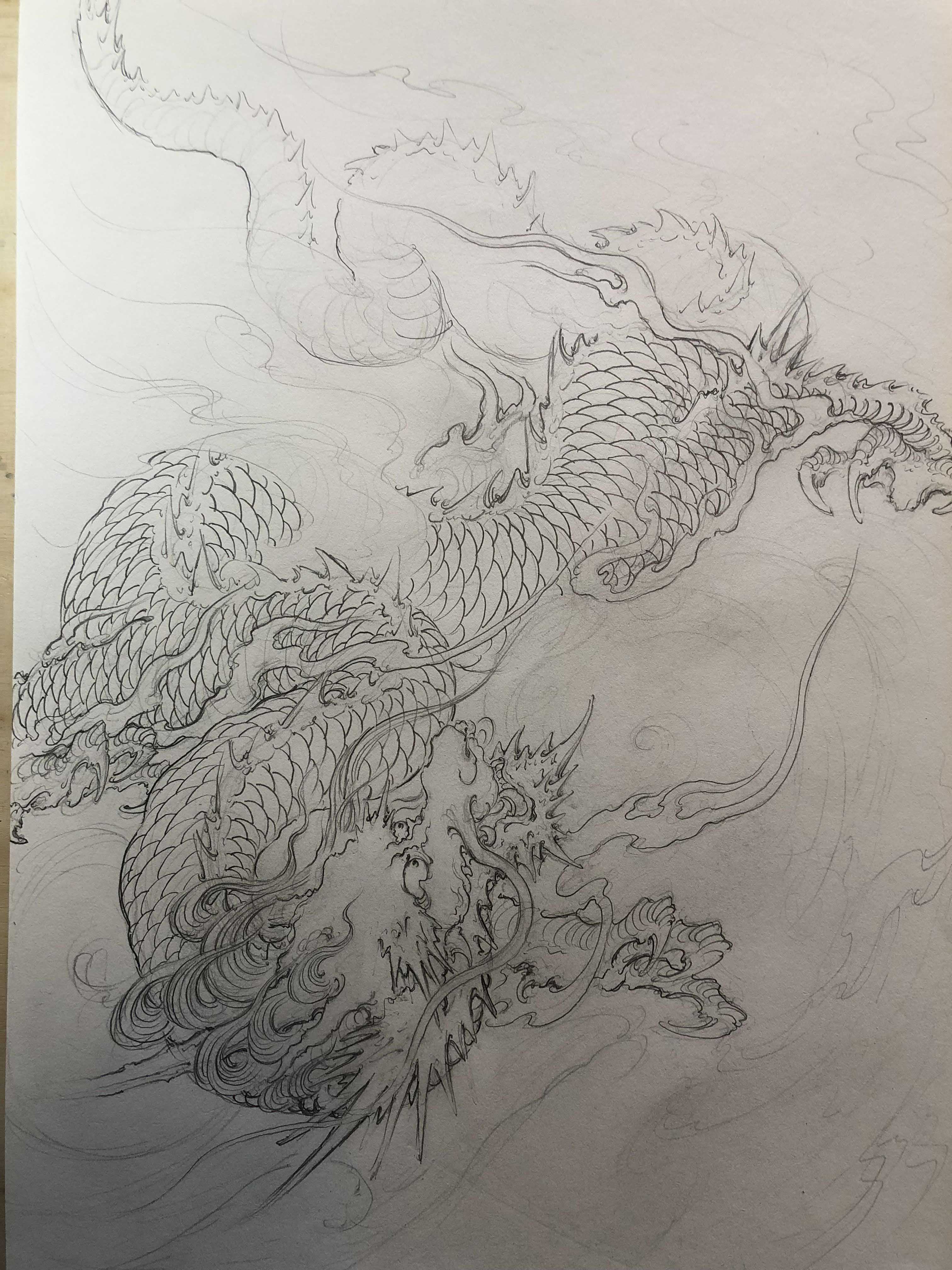 由龍专注于中华民族龙纹研究在中国龙的造型应用非常的广泛。研究造型方面,铅笔画龙的素描总归是最为基础性的。无论做木雕的、做石雕的、做玉雕的、做铜雕和瓷器的等等都必须先有一些画工做底子,不然雕刻描绘出来的龙肯定是没有灵性也是不够生动的。对于手艺人来说找来的老图反复使用经常会出现工艺品撞脸的情况。造型的革新和原创性才是未来的进取方向.........下面是由龙老师的素描,线稿流程花絮分享给大家,希望能给有缘人带来一些启发.........