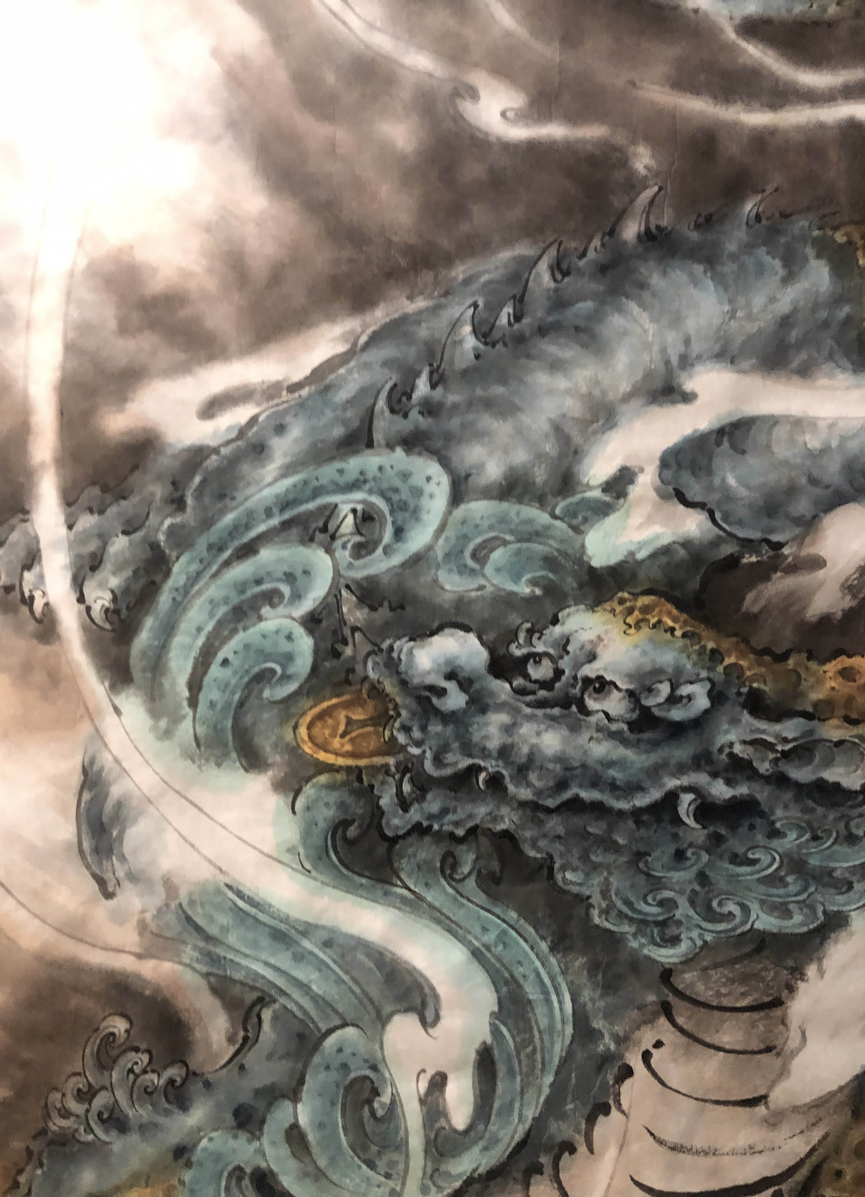福建同胞定制由龍原创设计的《貔貅图》,从构思到勾线水墨布置色彩画画停停耗时10天余。貔貅拼音是pí xiū,是中华民族古籍记载和民间神话传说的一种凶猛的瑞兽。中国古代学者认为貔貅是转祸为祥的吉瑞之兽。从古至今,上至王侯、下至草民都极度注重收藏和佩戴貔貅,中国传统有装饰“貔貅”的习俗,貔貅寓意丰富,人们相信它能带来欢乐及好运。貔貅图以水墨或以彩墨形式表现较为少见,此图为生宣纸,水墨上赋以花青石青赭石焦茶等,不求艳丽只求多一些灰调调免得刺眼。下面为绘制过程的一些花絮记录,望能为有缘人有些助益.............